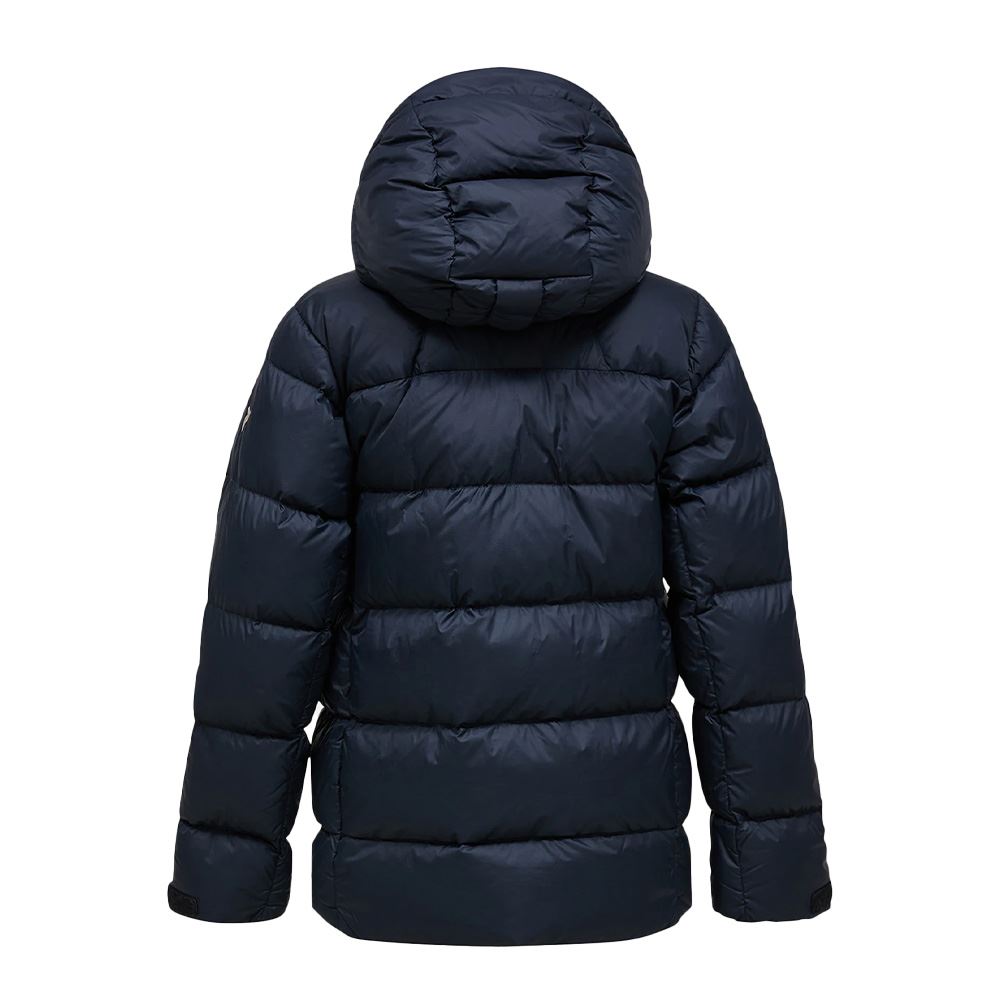 Frost Down Puffer Jacket - En modern dunjacka med huva i puffer-silhuett som kombinerar värme, lätthet och stil. Tillverkad i återvunnen polyamid och fylld med 90/10-ankdun och fjädrar för exceptionell isolering. Den packbara designen gör den enkel att ta med, vilket gör jackan till ett mångsidigt val för både vardag och friluftsliv.