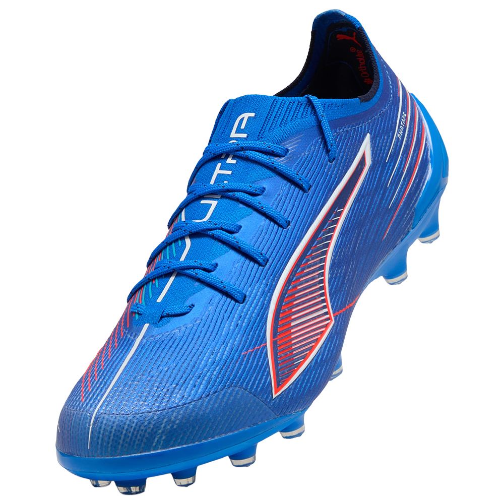 Puma Ultra 6 Ultimate AG är skapade för explosiv fart och snabba riktningsförändringar. Med en lättviktig ovandel i mesh och GripControl-skin får du optimal bollkontroll även i högt tempo. Den tekniska TPU-yttersulan är anpassad för både fasta naturgräsplaner och konstgräs, vilket ger bra grepp och stabilitet oavsett underlag. Perfekta för spelare som vill tänja på gränserna – och lämna motståndarna bakom sig.
