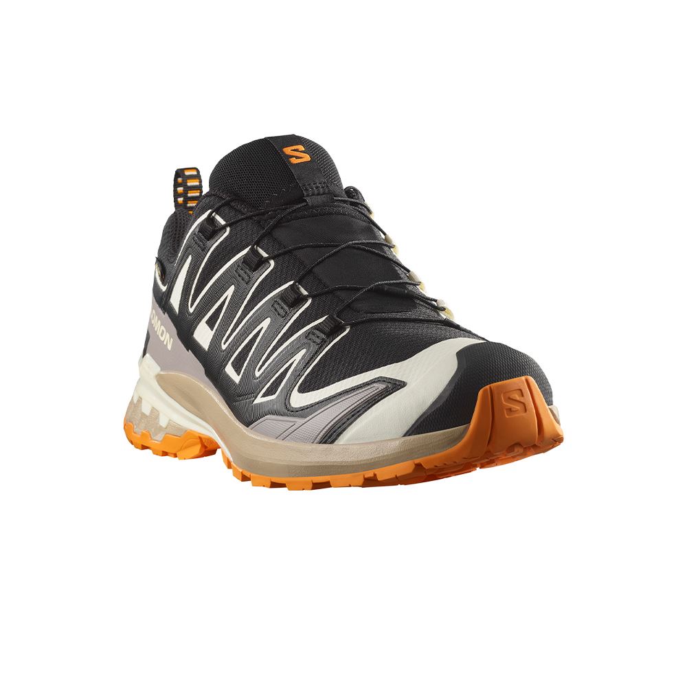 Salomon XA Pro 3D V9 GTX är ett par stabila och bekväma skor för löpning i terräng men går lika bra att använda till lättare vandring. Skorna är tillverkade med ovandel i ventilerande mesh och textil samt GORE-TEX® membran som ger ett vattentätt skydd med god andningsförmåga. Dessa löparskor har bra dämpning som ger ökad komfort och stabil passform med Quicklace snabbsnörning, OrthoLite® innersula samt 3D Advanced Chassis™-teknologin som medför bra stöd och stabilitet för foten. Dessa skor har fler detaljer som snörficka i plösen, förstärkt tåparti samt en yttersula som ger utmärkt grepp på underlaget.