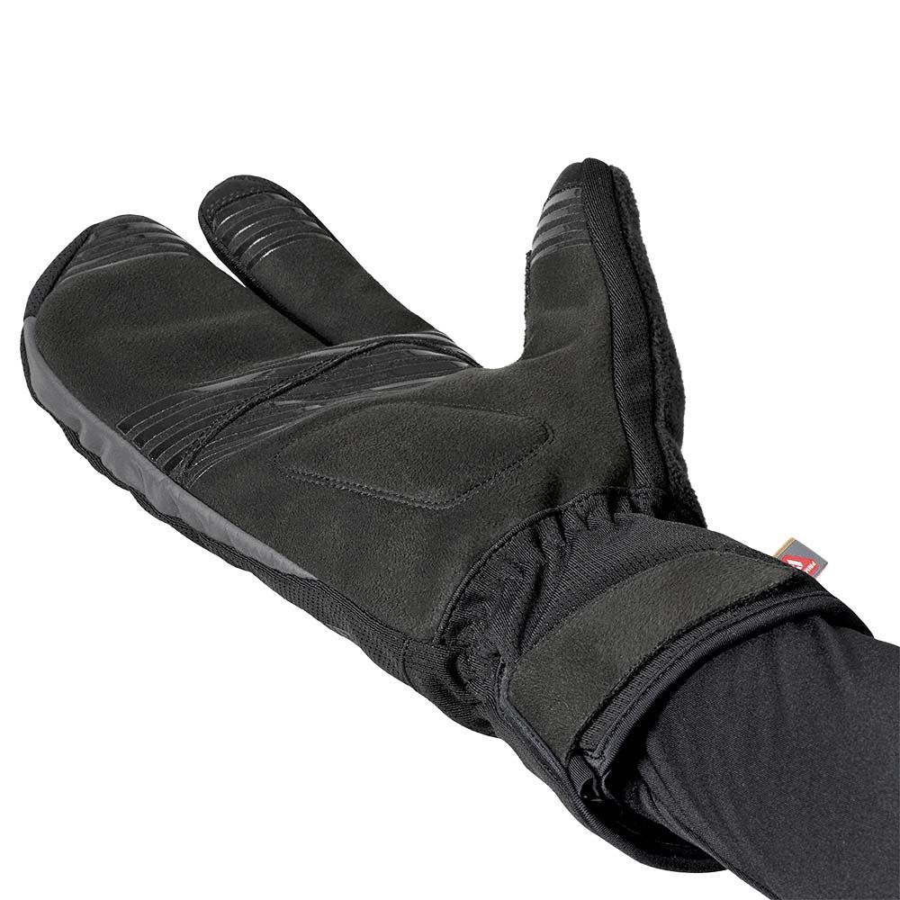 Handskarnas handflator är tillverkade av slitstark syntetisk mocka med strategiskt placerad vaddering och ett silikongreppsmönster för maximal komfort och kontroll. Lobster-designen på handskarna har tagits fram med en optimalt anpassad fingerdelning som gör det enklare att bromsa och växla på både landsvägscykel och mountainbike. Pekfingret är också pekskärmskompatibelt!