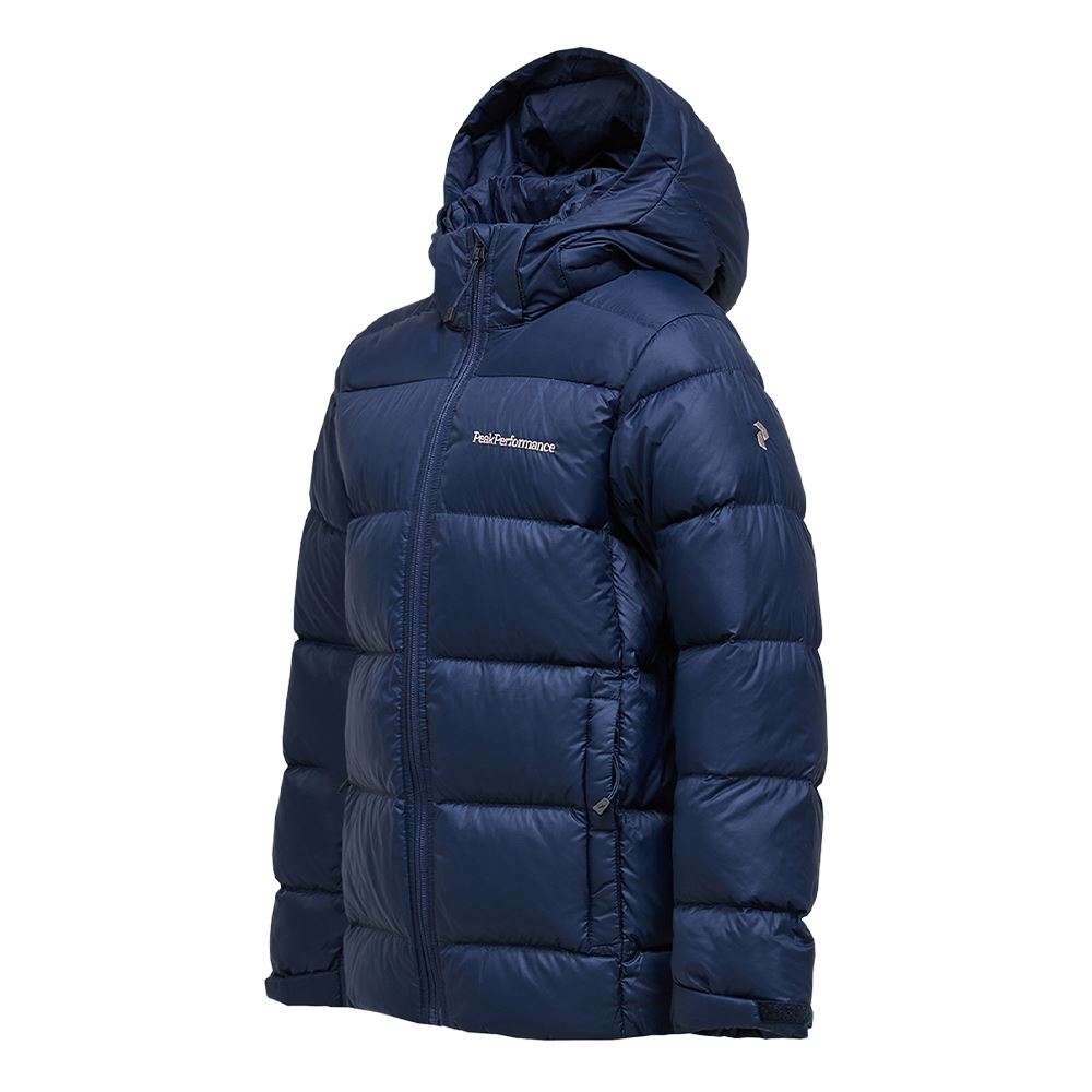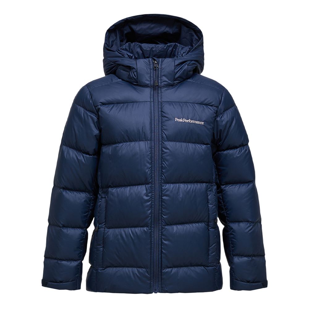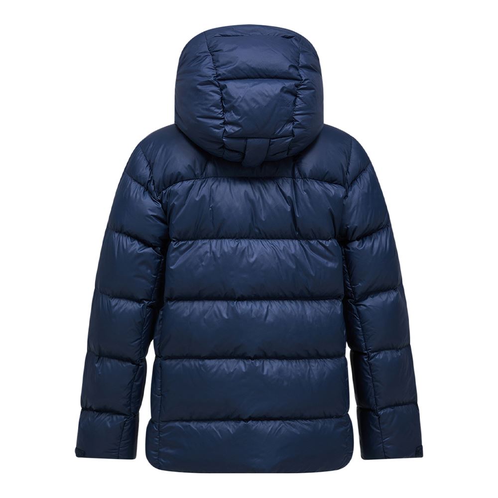 Frost Down Puffer Jacket - En modern dunjacka med huva i puffer-silhuett som kombinerar värme, lätthet och stil. Tillverkad i återvunnen polyamid och fylld med 90/10-ankdun och fjädrar för exceptionell isolering. Den packbara designen gör den enkel att ta med, vilket gör jackan till ett mångsidigt val för både vardag och friluftsliv.
